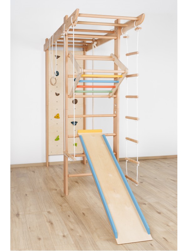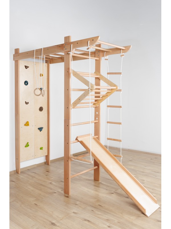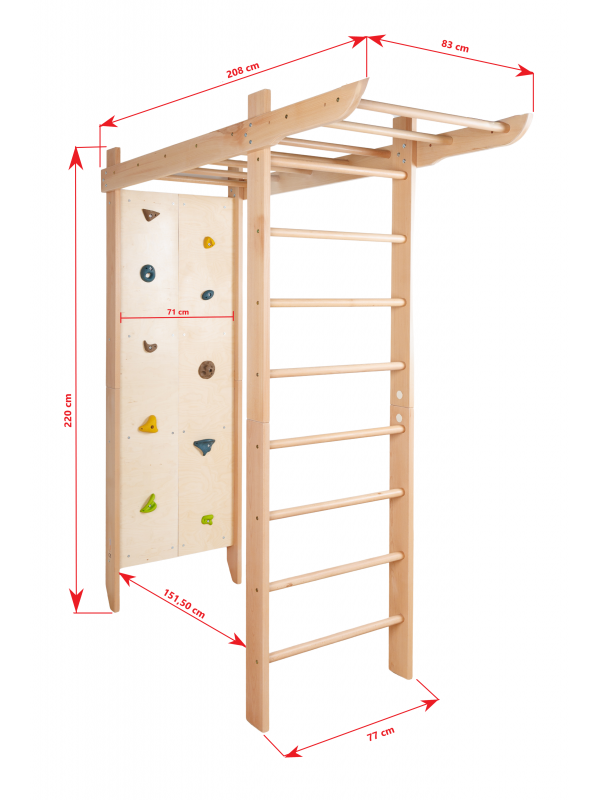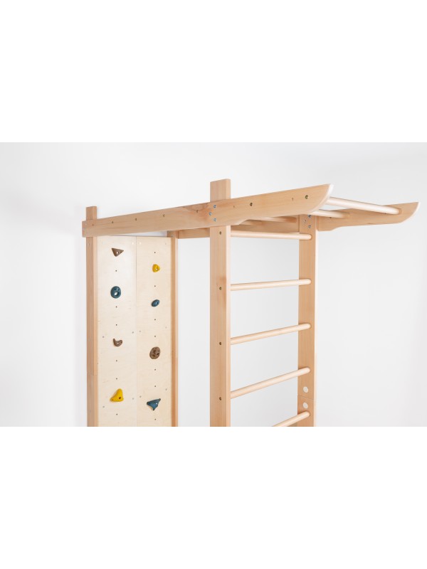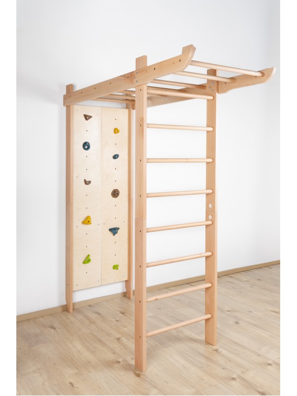 Večnamenska notranja oprema za igro, gibanje in vadbo za vse generacije. Trden bukov les zagotavlja stabilnost, varnost in prijeten naravni videz, medtem ko premišljen dizajn spodbuja gibanje ter skupno preživljanje časa.