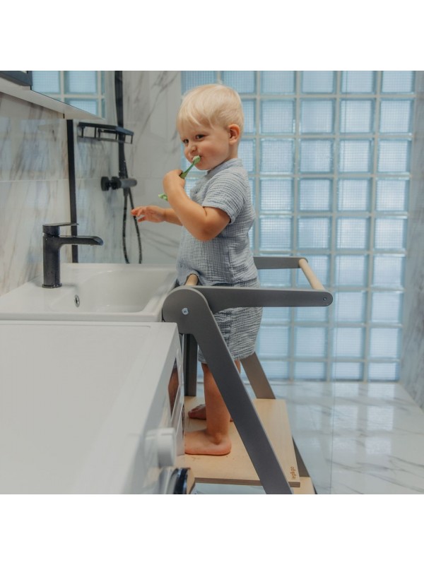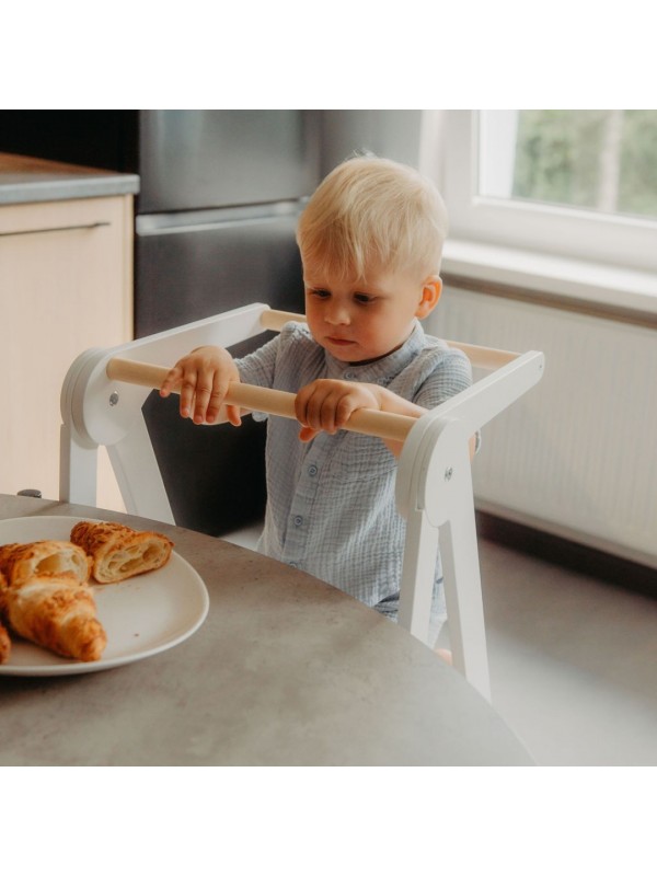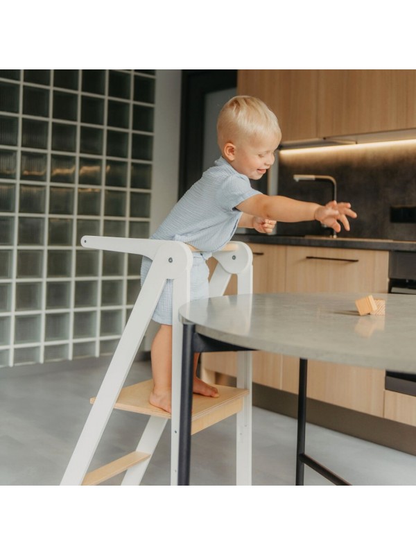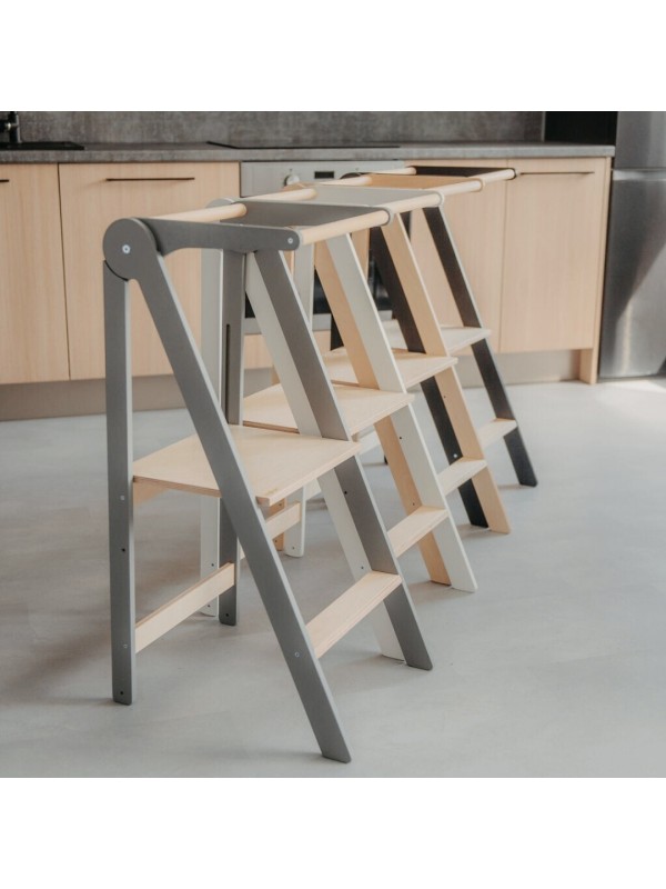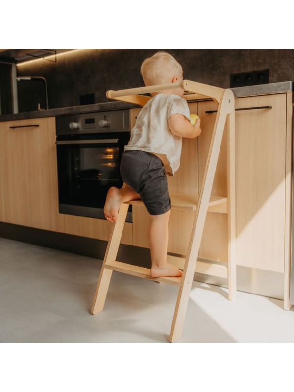 Zložljiv učni stolp je zasnovan tako, da podpira otroke in olajša vsakdanje življenje staršev. Ta praktičen pomočnik otrokom omogoča, da dosežejo kuhinjske pulte, umivalnike in druge višje površine ter se tako vključijo v vsakodnevne dejavnosti. In najboljše? Stolp se enostavno zloži na izjemno tanko obliko, kar prihrani prostor in omogoča preprosto shranjevanje.